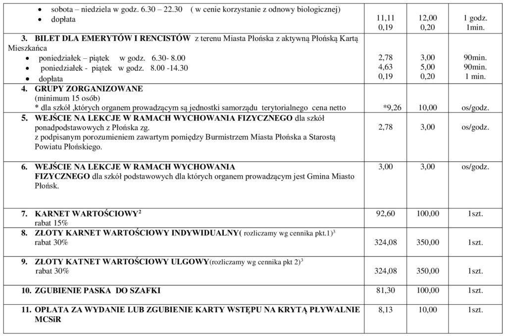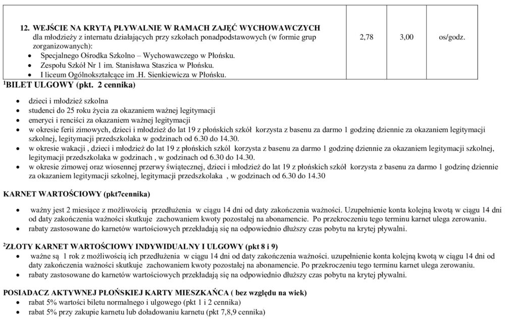 Cennik i godziny pracy pływalni i odnowy biologicznej
